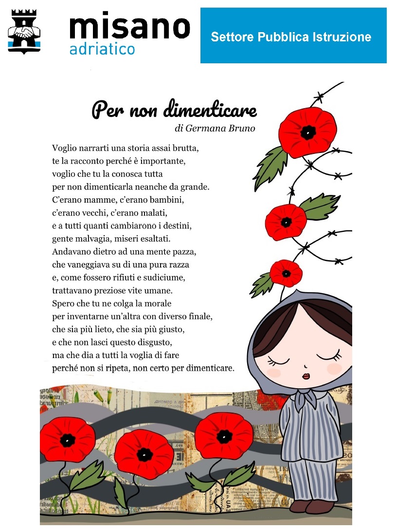 In occasione del Giorno della Memoria l’Amministrazione comunale ha scelto queste due poesie per ricordare le vittime della Shoah, per difendere la memoria del passato e per stimolare una riflessione sul valore della responsabilità individuale e dei diritti dell’uomo.