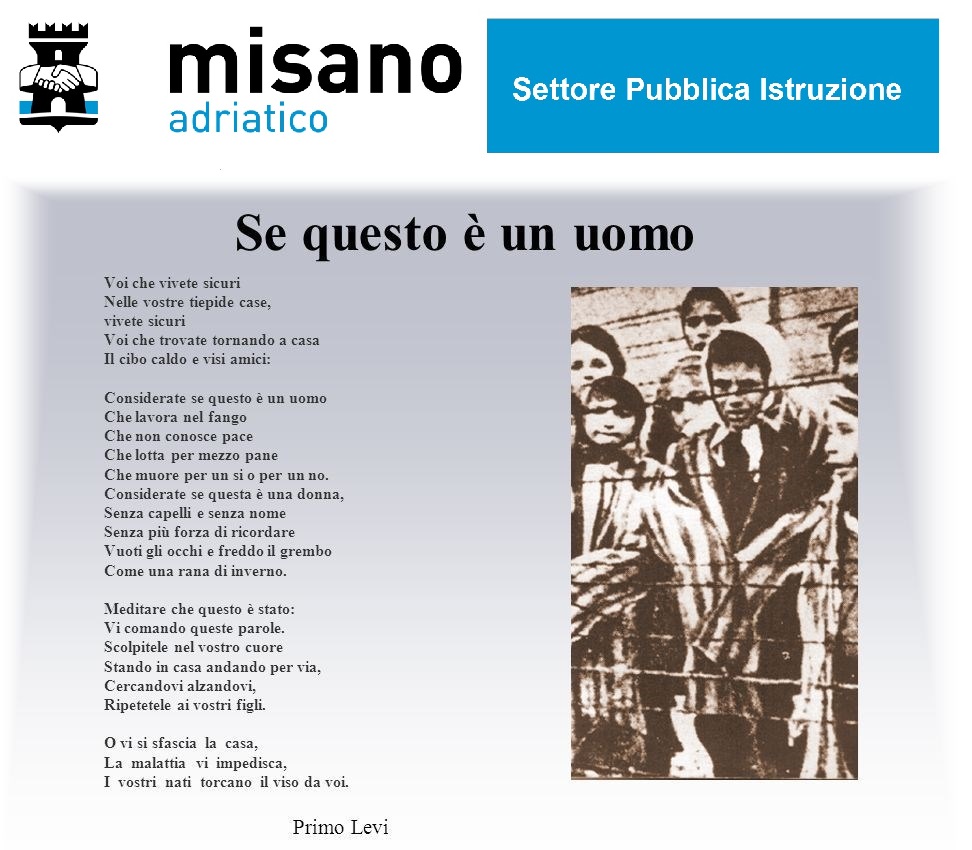 In occasione del Giorno della Memoria l’Amministrazione comunale ha scelto queste due poesie per ricordare le vittime della Shoah, per difendere la memoria del passato e per stimolare una riflessione sul valore della responsabilità individuale e dei diritti dell’uomo.