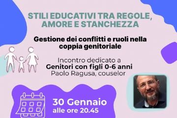 Evento passatoVenerdì 30 gennaio 2026 alle ore 20.45, vi sarà un incontro dedicato a genitori con figli 0-6 anni, dal titolo "Stili Educativi tra Regole, Amore e Stanchezza" Gestione dei conflitti e ruoli nella...