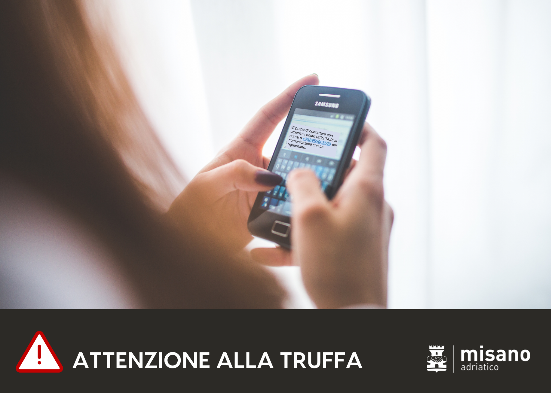 Il Comune di Misano Adriatico intende chiarire di essere totalmente estranea a tali messaggi, di natura fraudolenta, e mette in guardia la cittadinanza dal chiamare il numero riportato nel testo del messaggio. Si tratta, infatti, di un classico tentativo di phishing tramite Sms che può comportare costi elevati per chi chiama ed è spesso utilizzato anche per sottrarre dati sensibili o indurre a effettuare pagamenti non dovuti.