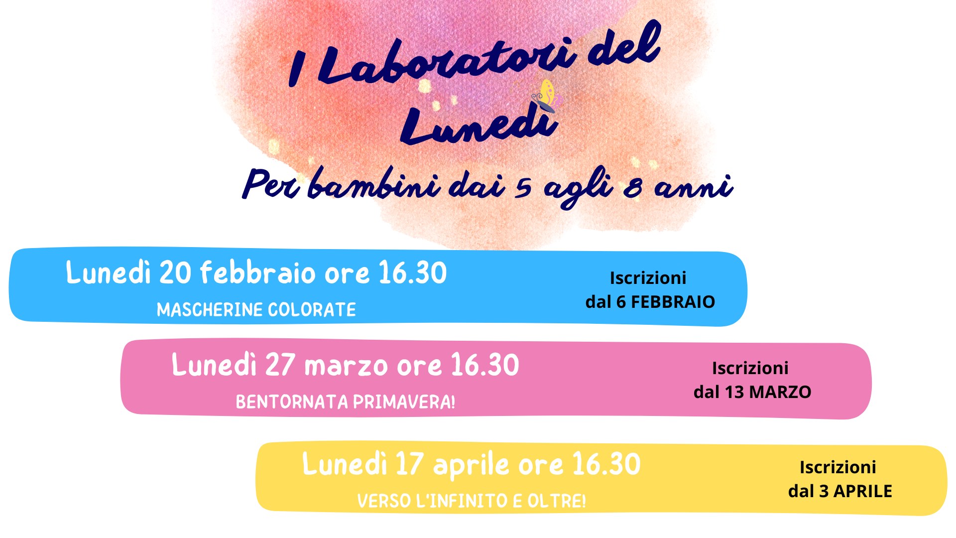Ciascun laboratorio necessita di prenotazione obbligatoria, dalla data indicata sulla locandina.