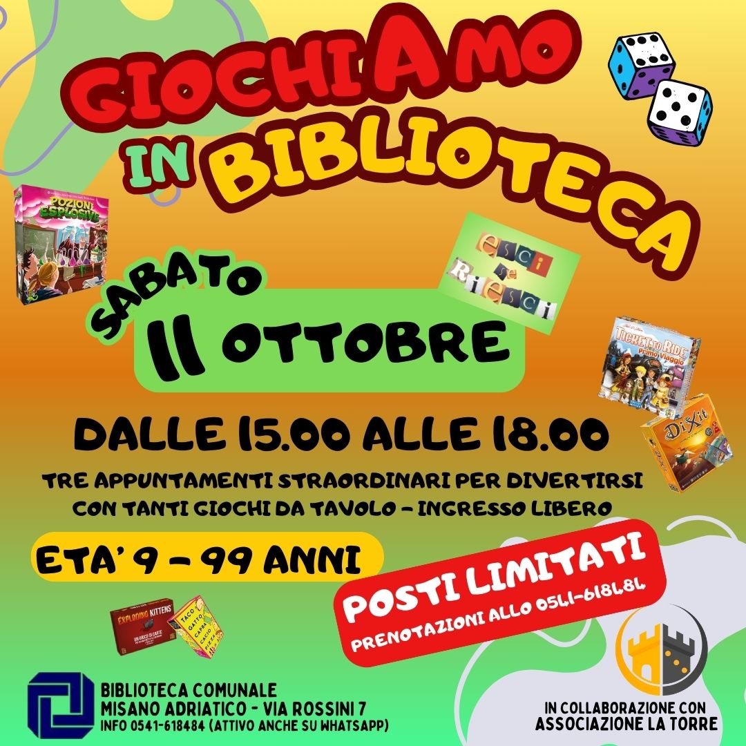 In biblioteca trovi sempre la nostra nuova collezione di giochi da tavolo! vieni a trovarci, sicuramente abbiamo quello che fà per te !!