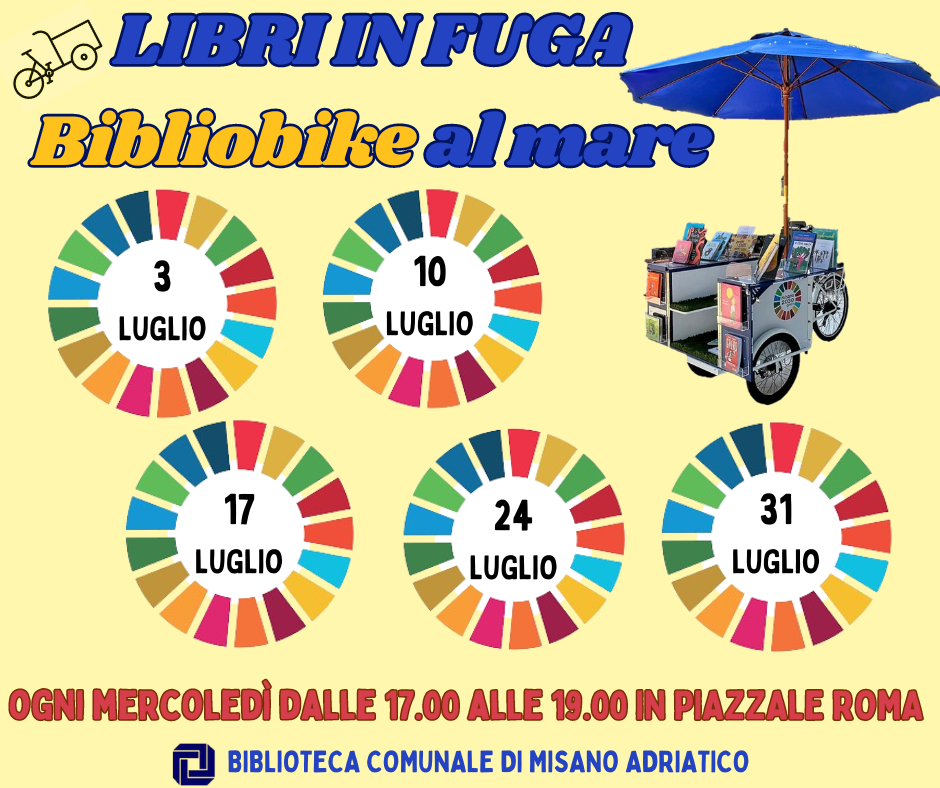 L’iniziativa “Libri in fuga: Bibliobike al mare”, fortemente voluta dall’Amministrazione Comunale e dall’Assessorato alla Cultura, è un progetto a impatto zero, secondo le direttive dell’Agenda green 2030, che permette alla Biblioteca di incontrare persone anche fuori dalle proprie mura e realizzare al meglio la vocazione turistica di Misano Adriatico.