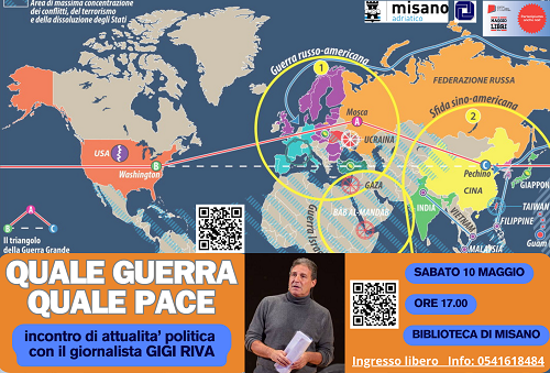 Della precaria situazione internazionale, degli scenari possibili e delle conseguenze per il nostro paese si discuterà in biblioteca insieme a Gigi Riva, scrittore e prestigiosa firma del giornalismo italiano, a lungo inviato speciale in Medioriente per l'Espresso e nella ex Jugoslavia per Il Giorno.