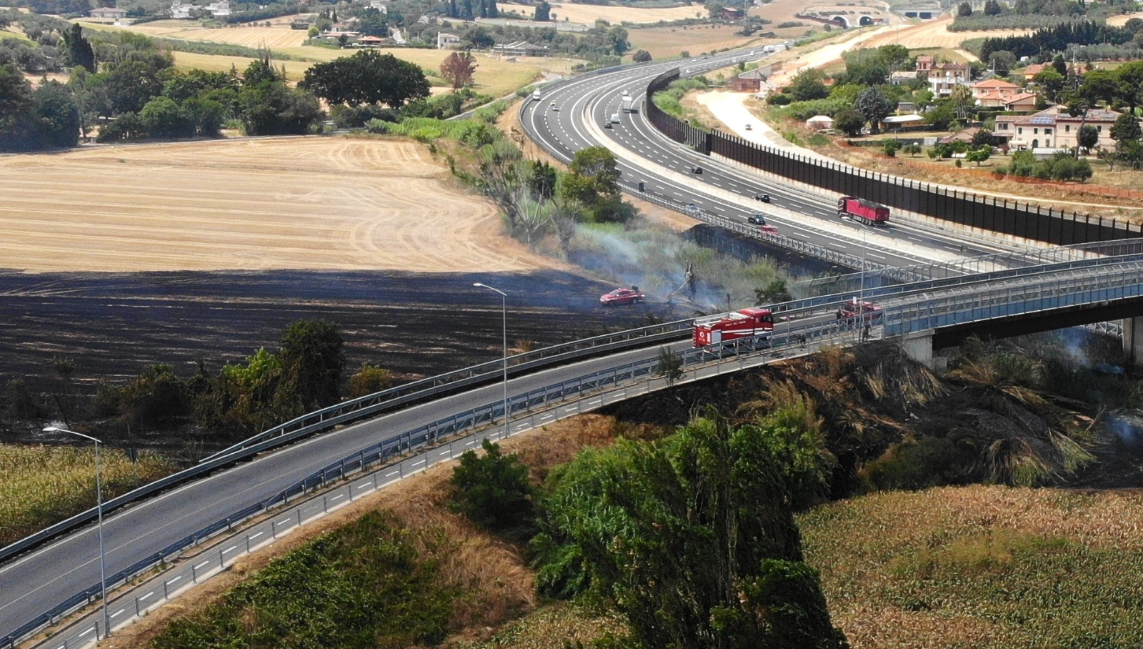 Oggi intorno alle 13.00 s’è sviluppato un incendio in un’area piuttosto vasta di Misano, all’inizio della zona artigianale di Santamonica, nei pressi del cavalcavia autostradale a monte della Riccione-Tavoleto.