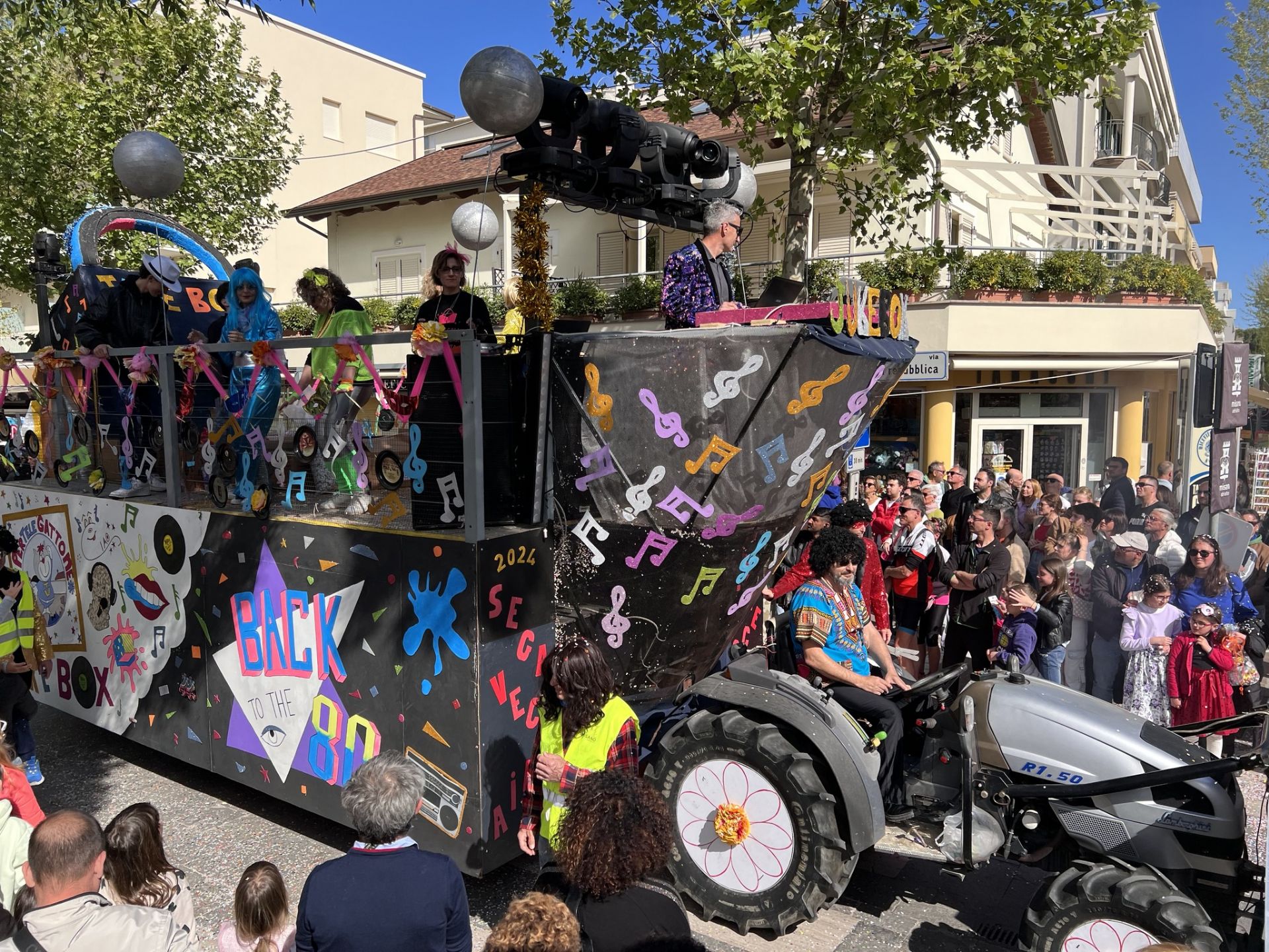 Al pomeriggio, alle 15:15, avrà inizio lo spettacolo degli sbandieratori in Via Repubblica e dalle 15:30 prenderà il via la sfilata dei carri allegorici.
